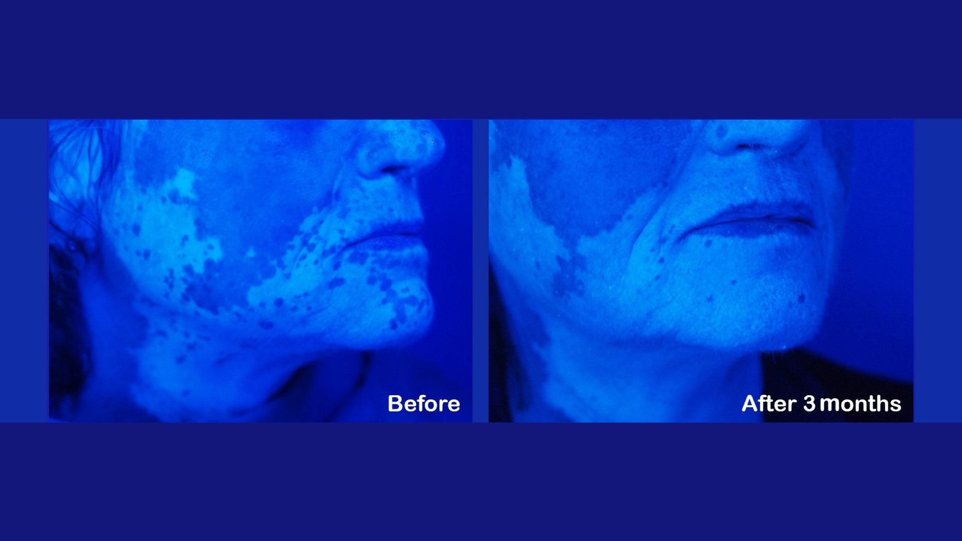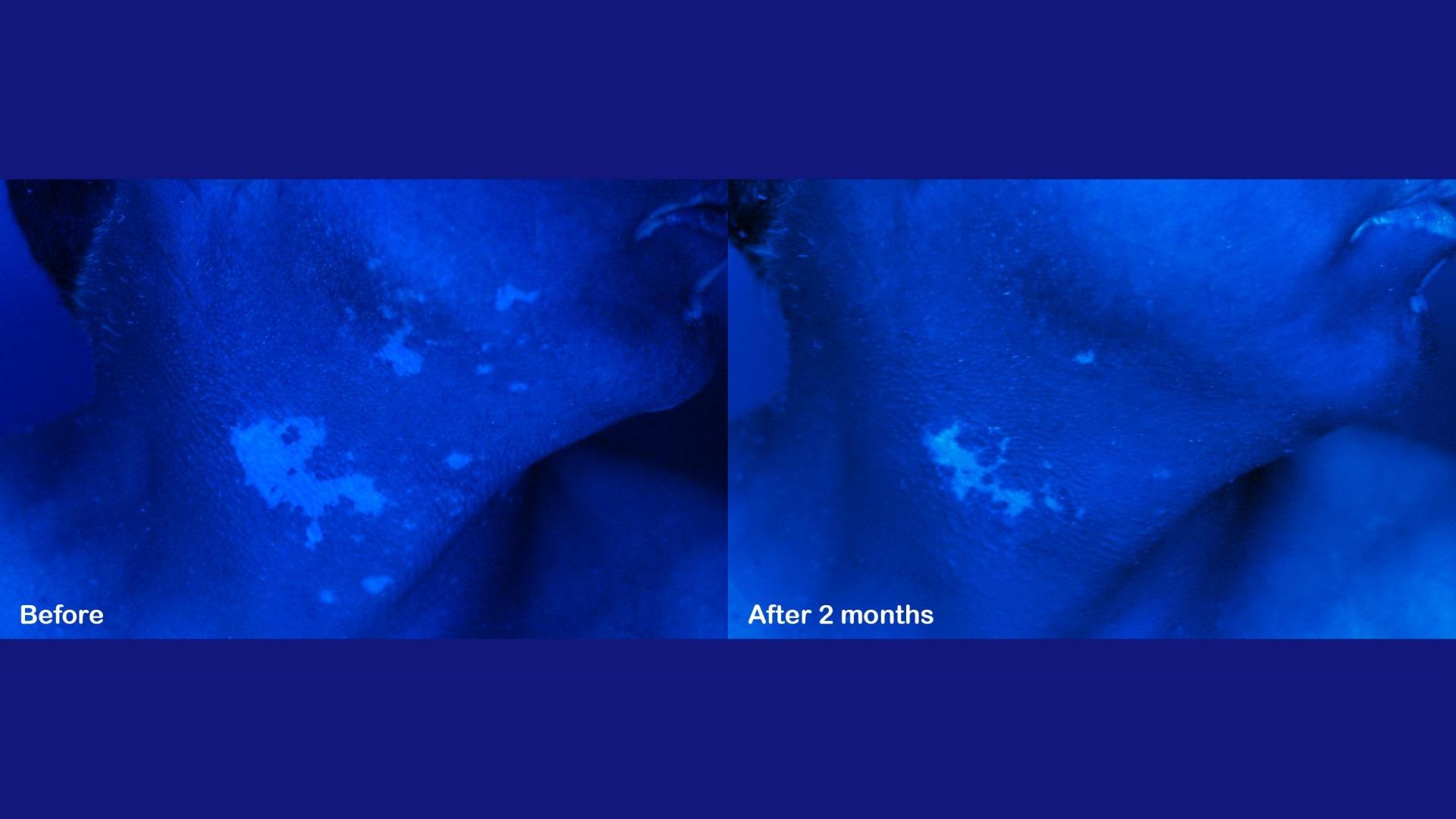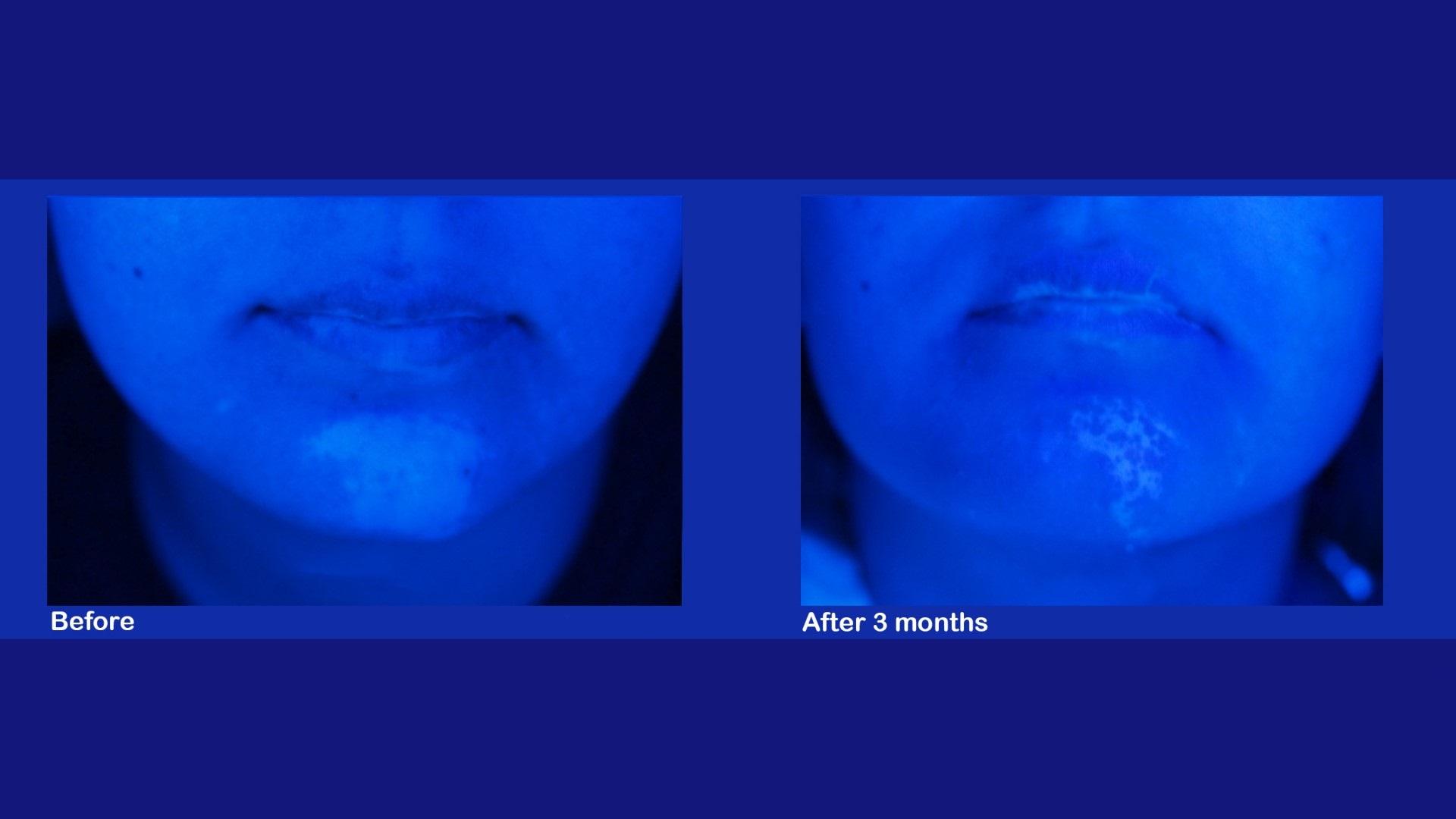 Δείτε περιστατικά λεύκης σε κεφάλι και λαιμό ασθενών μας. Για τη φωτογράφιση χρησιμοποιείται η λάμπα του Wood, ένας ειδικός φωτισμός ο οποίος έχει τη δυνατότητα να αναδεικνύει και την πιο μικρή εστία της λεύκης και δεν επιδέχεται ουδεμία παραποίηση ή Photoshop.