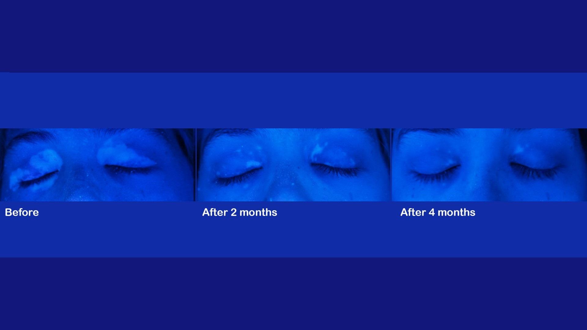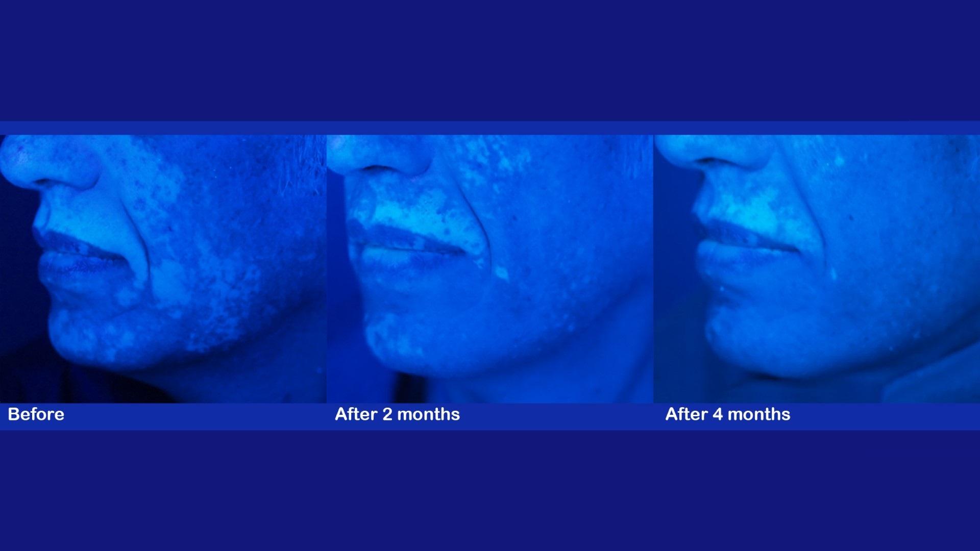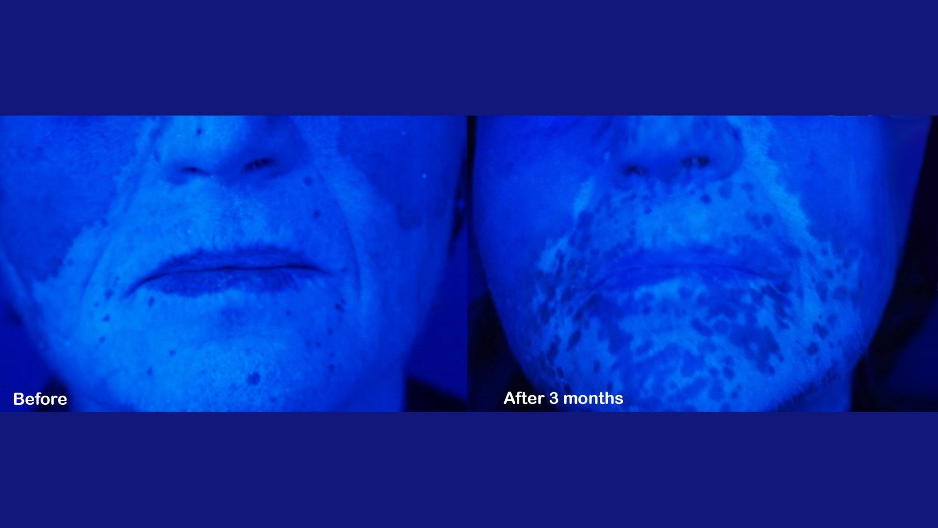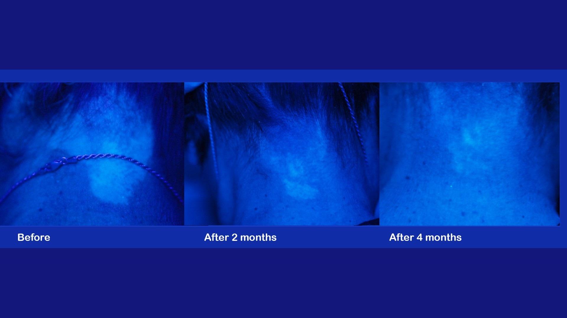 Δείτε περιστατικά λεύκης σε κεφάλι και λαιμό ασθενών μας. Για τη φωτογράφιση χρησιμοποιείται η λάμπα του Wood, ένας ειδικός φωτισμός ο οποίος έχει τη δυνατότητα να αναδεικνύει και την πιο μικρή εστία της λεύκης και δεν επιδέχεται ουδεμία παραποίηση ή Photoshop.